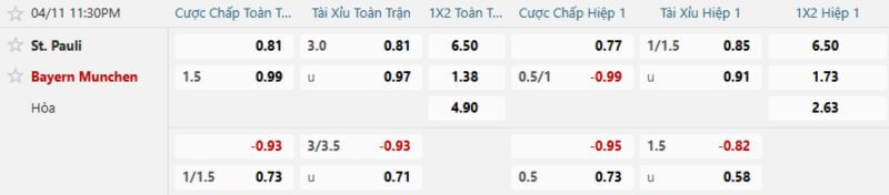 Soi kèo trận đấu giữa St. Pauli vs Bayern Munich